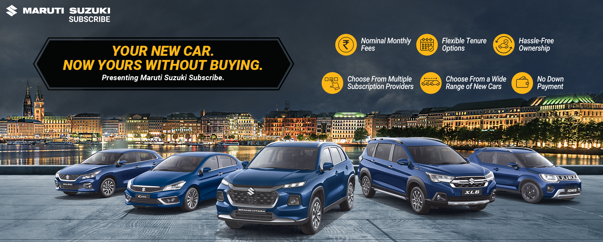 Maruti Suzuki Subscribe enables all customers to enjoy driving their preferred Maruti Suzuki cars without having to deal with all the financial responsibilities that come with owning a car.All you need to do is opt for a monthly subscription plan at a fixed monthly fee, which includes the routine maintenance and insurance costs, and choose a flexible tenure. At Ramkrishna Motors Pvt Ltd in, Zeromile, Muzaffarpur, all Hatchback, Sedan, SUV, the MUV models line-up includes Baleno, Invicto, EVitara, Jimny, Ciaz, Ignis, Fronx, Grand Vitara, XL6. Here, you will enjoy Maruti Suzuki Subscribe benefits such as: